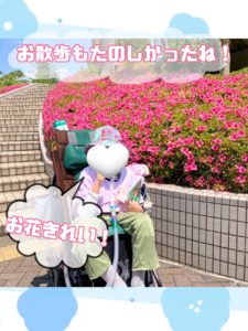 ピタゴラスイッチのような目の追視は視覚認識も高まりますし、季節に合ったお花や植物もたくさん咲いていたので、季節を感じながら楽しむことができました🌸