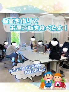また医療的ケアが必要なお子さんでも安心して過ごす事ができるように、会議室を借りてみんなで食事をしました(^^)/