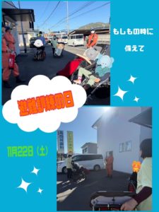11月18日にすぽっと森松、11月22日にすぽっと久米で避難訓練を行いました。